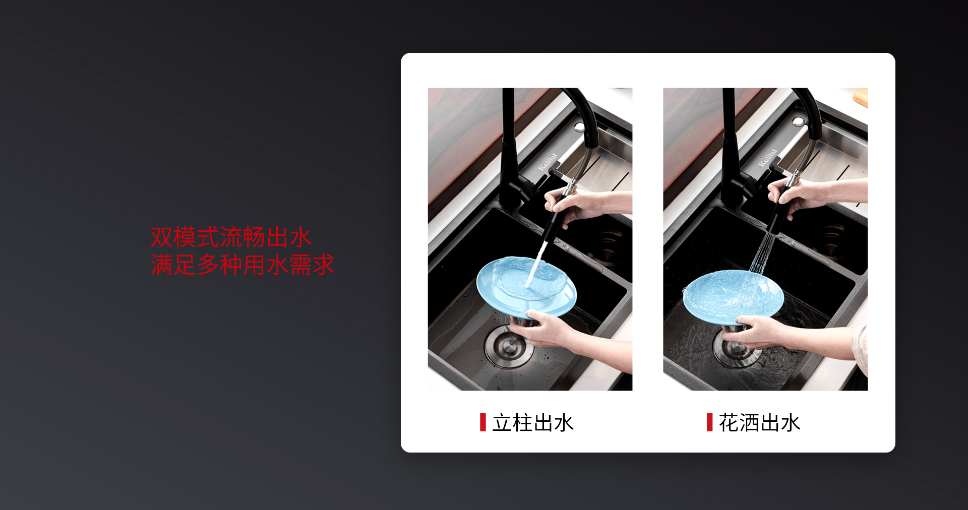 庫靈圖的抽拉式快裝龍頭,打破傳統(tǒng)費時費力的安裝方式,僅需1分鐘即可安裝完成。更亮眼的是其無重錘抽拉結(jié)構(gòu),流暢抽拉的同時,無需擔(dān)心重錘失靈的情況,廚下空間也可以更好地利用。
