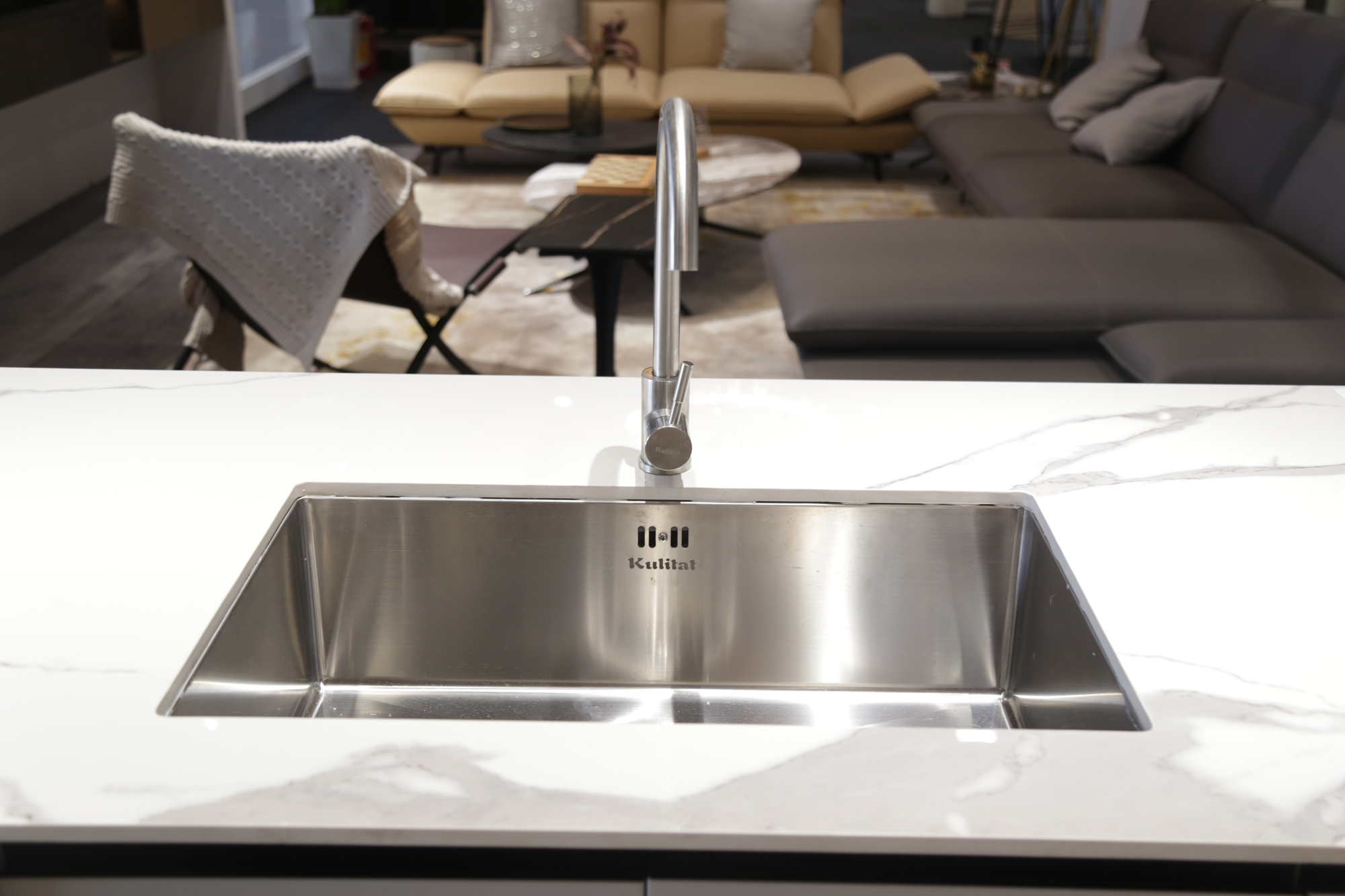 相比于去年展會,今年庫靈圖在3號展館開設了一個不銹鋼陽臺柜、浴室柜模塊,觀眾多層次體驗庫靈圖打造的開放式靈動生活。