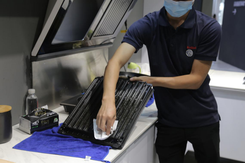 油煙,是困擾中國廚房的頭號問題。李林鴻先生為現場觀眾介紹了庫靈圖的吸油煙機,它具有側吸式設計、前置油煙分離、整流增壓艙、免拆洗等特點。能真正實現不碰頭、不滴油、不跑煙、不用洗的夢想,是開放式廚房實現爆炒不跑煙的核心。