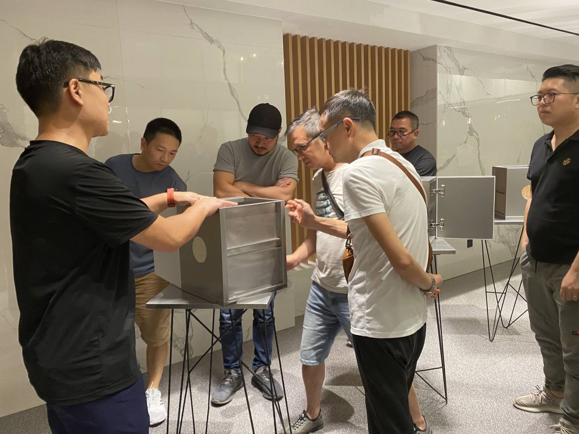 在接下來(lái)的活動(dòng)中,設(shè)計(jì)師朋友們跟隨著庫(kù)靈圖展廳參觀的動(dòng)線,逐步了解了各類不銹鋼廚柜、陽(yáng)臺(tái)柜等產(chǎn)品和工藝細(xì)節(jié)。R角一體壓模成型、蜂窩鋁+環(huán)保發(fā)泡復(fù)合填充等專屬于庫(kù)靈圖的獨(dú)家工藝技術(shù),以及各類人性化設(shè)計(jì)細(xì)節(jié)和時(shí)尚外觀,讓設(shè)計(jì)師們倍感興趣,好評(píng)不斷。